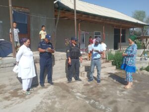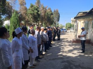 Sariosiyo tumani san epid bo’limi xodimlari boshqa mas’ul  tashkilotlar bilan birgalikda tumandagi chegara hududda joylashgan Hamkorlik mahallasida mahallabay tizimida uylarga aholi bilan yuzma yuz gaplashib yuqumli kasalliklar: botulizm, gepatit, kuydirgi, qutirish, burseloz va boshqa kasallkiklar haqida, hammom, molxona, hojatxonalarni toza saqlash bo’yicha tushuncha va tarqatmalar berildi, eyishga yaroqsiz bankalar yo’q qilindi, toza qo’llar bo’yicha tavsiyalar berildi.