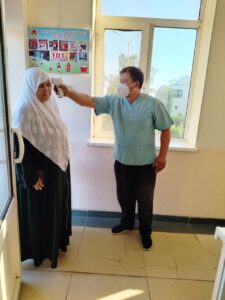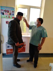 Sariosiyo tumani san epid bo’limi Sanitariya karantin punkti xodimlari tomonidan chegaradan O’zbekistonga o’tuvchilar nazoratdan o’tkazilmoqda.