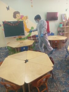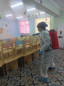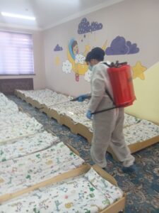 🔰Sariosiyo tuman saepid bo‘limi, sanitariya-gigiyena va dezinfeksiya bo‘limining mas’ul xodimlari tomonidan tuman maktabgacha ta’lim tashkilotiga qarashli 35-MTTda gripp profilaktikasiga qarshi dezinfeksiya ishlari amalga oshirilmoqda.Тa’lim tashkilotlarida tarbiyalanayotgan bolalarni xavfsiz va sifatli ovqatlantirish holatlari nazoratga olindi va tegishli tavsiyalar berildi.
