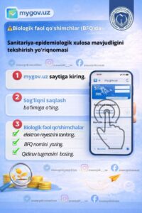‼️Biologik faol qoʼshimchalar iste’mol qilish, xarid qilishdan avval ushbu mahsulotlar respublikamizda davlat ro‘yxatidan o‘tgani hamda sanitariya-epideiologik xulosasi mavjudligini tekshirish uchun Yagona interaktiv davlat xizmatlari portali my.gov.uz mobil ilovasidan foydalashingiz mumkin.