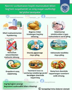 NAVRO‘Z VA RAMAZON HAYITI MUNOSABATI BILAN SOG‘LOM OVQATLANISH VA OZIQ-OVQAT XAVFSIZLIGI BORASIDAGI TAVSIYALAR
