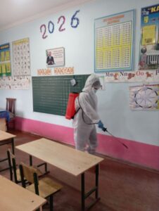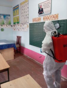 Sariosiyo tuman sanepid xodimlari tomonidan 61-maktabda yuqumli kasalliklarga qarshi profilaktik dezinfeksiya tadbirlari olib borilishi davom etmoqda.