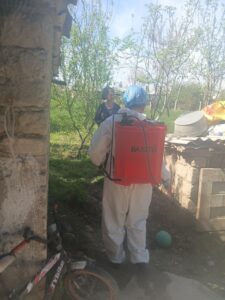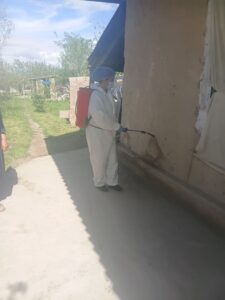Sariosiyo tumani SanEpid bo’limi dezinfeksiya bo’linmasi xodimlari tomonidan kasallik o’chog’ida dezinfeksiya ishlarini olib bordi.